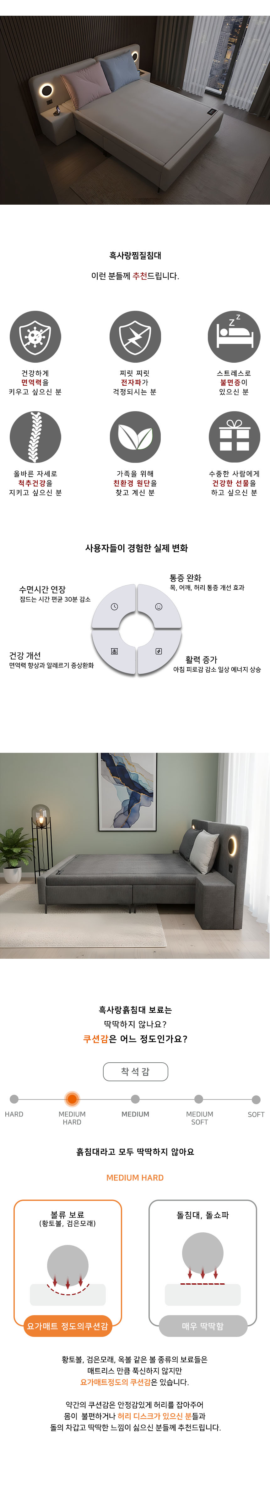 [부산 울산 경남 흙침대 추천] 흑사랑 루시아 흙침대 / 프리미엄 호텔식 LED침대 / 친환경 이지클린 원단 / 온열 건강침대 / 모던 헤드보드 디자인