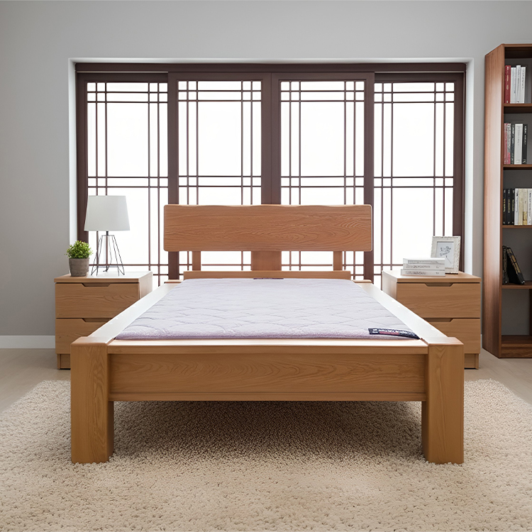 프레임 전체가 통원목 구조로 설계되어 흔들림 없이 안정적인 지지력을 자랑합니다. 세련된 한옥 감성의 디자인으로 어느 인테리어에도 조화롭게 어우러지며, 깔끔한 직선 구조는 공간을 더 넓고 고급스럽게 만들어줍니다.