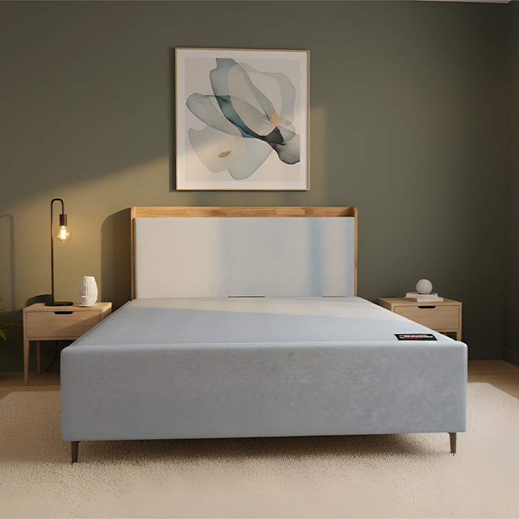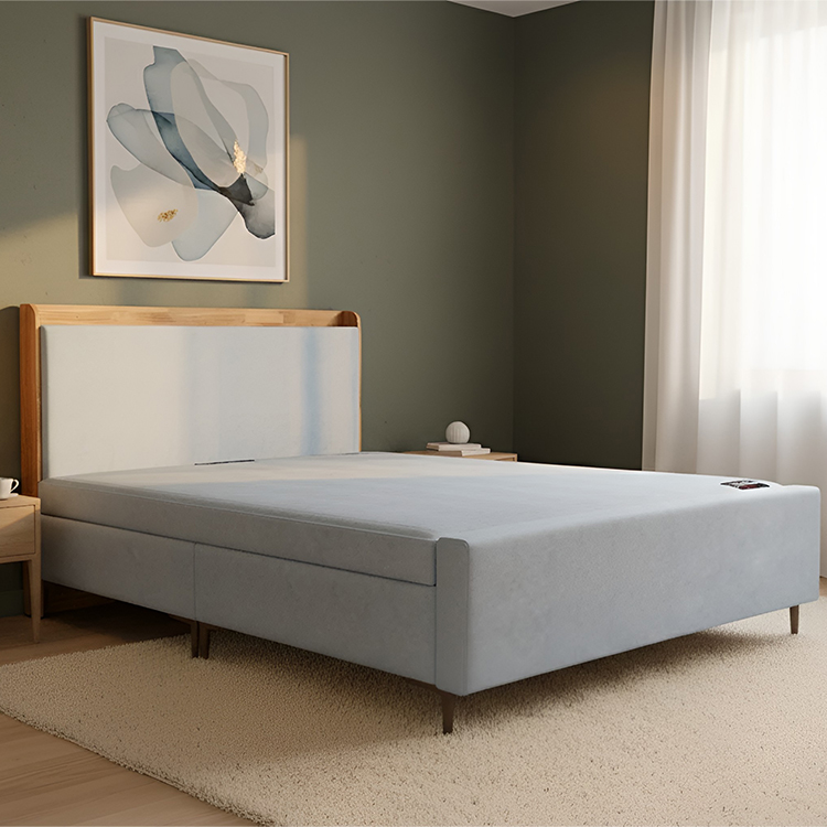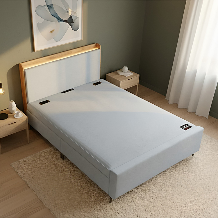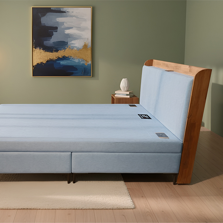 🪵 천연 이지클린 원단 – 생활방수 & 친환경 소재 헤드보드 상단에는 천연 원목이 적용되어, 차분한 패브릭과 자연스러운 나무 질감이 어우러집니다.